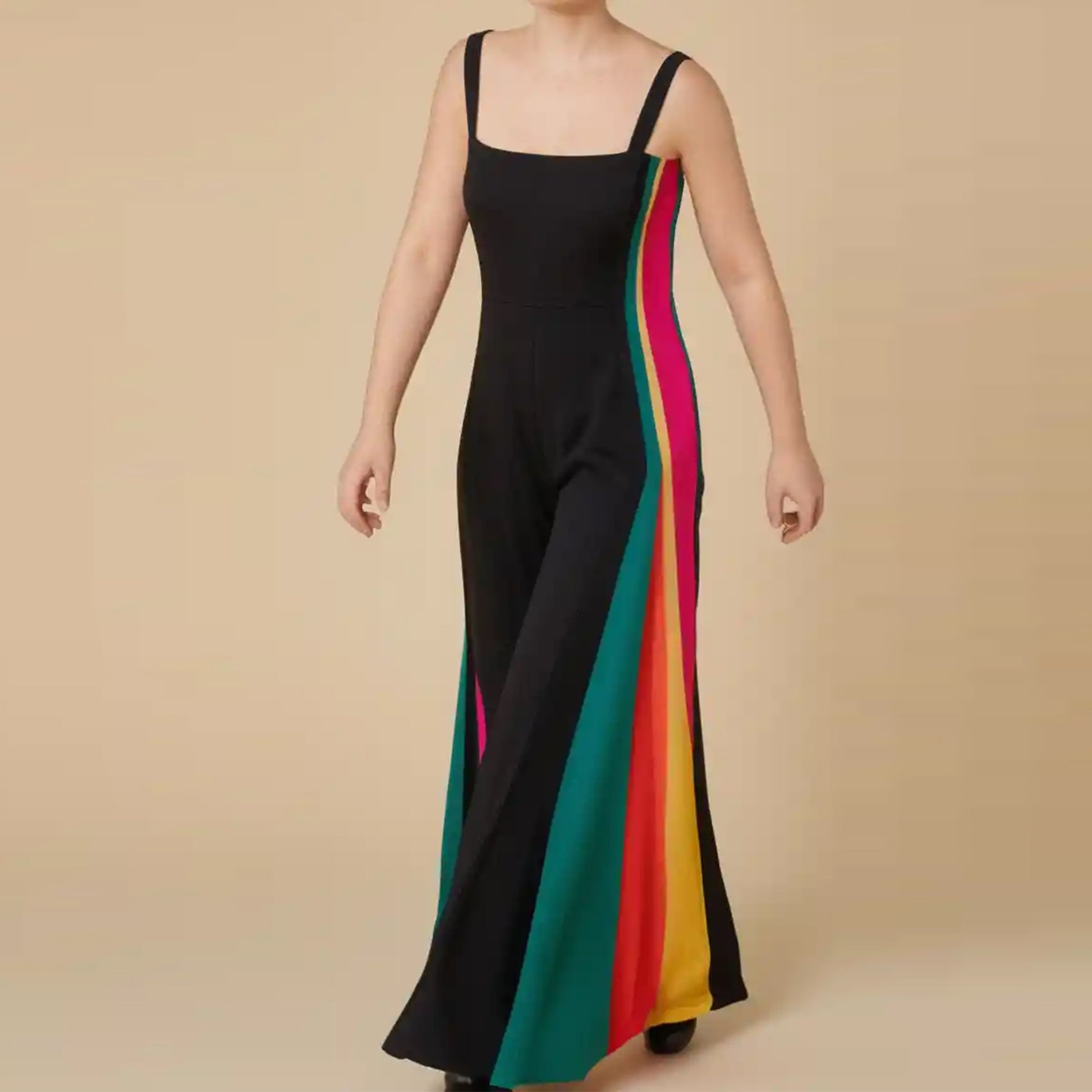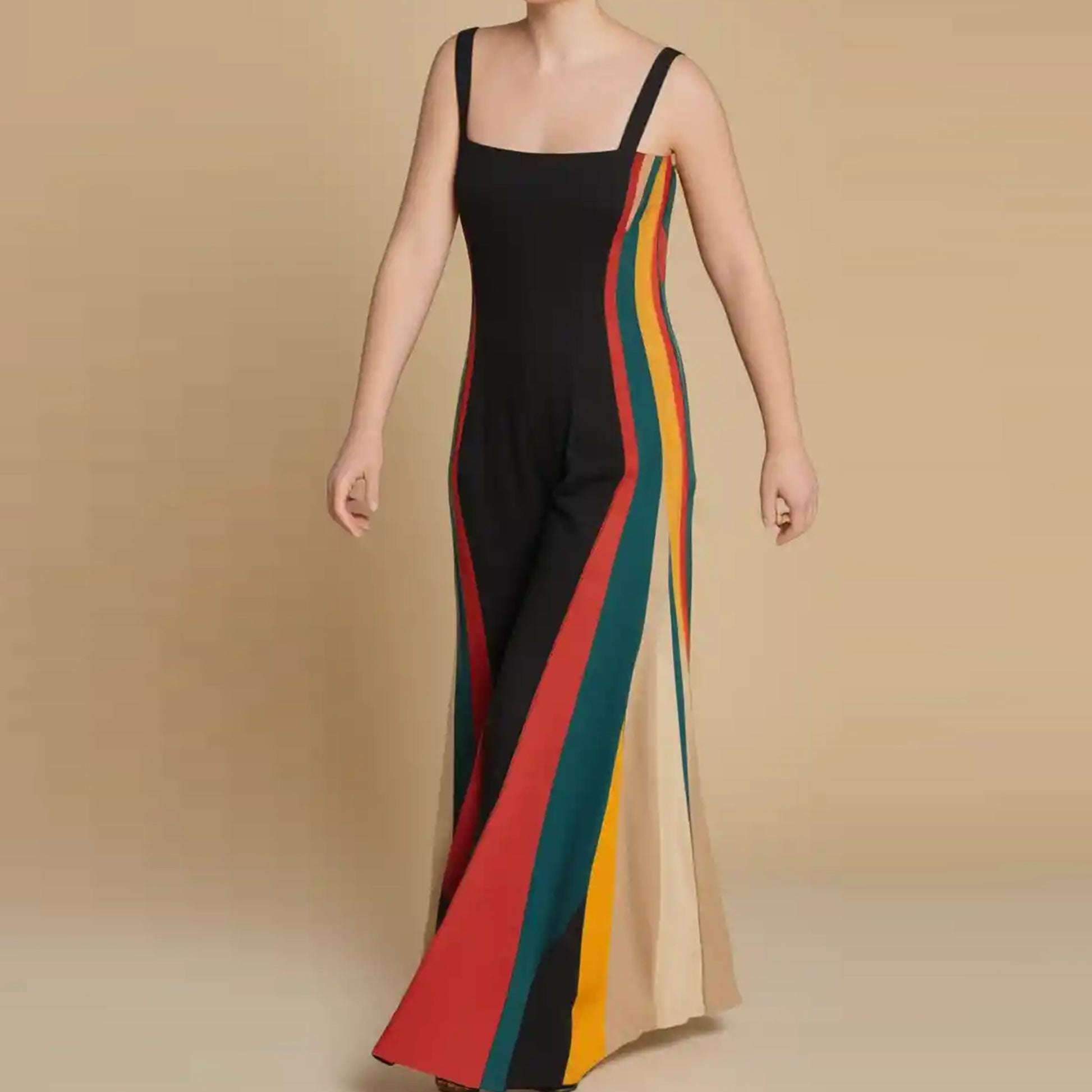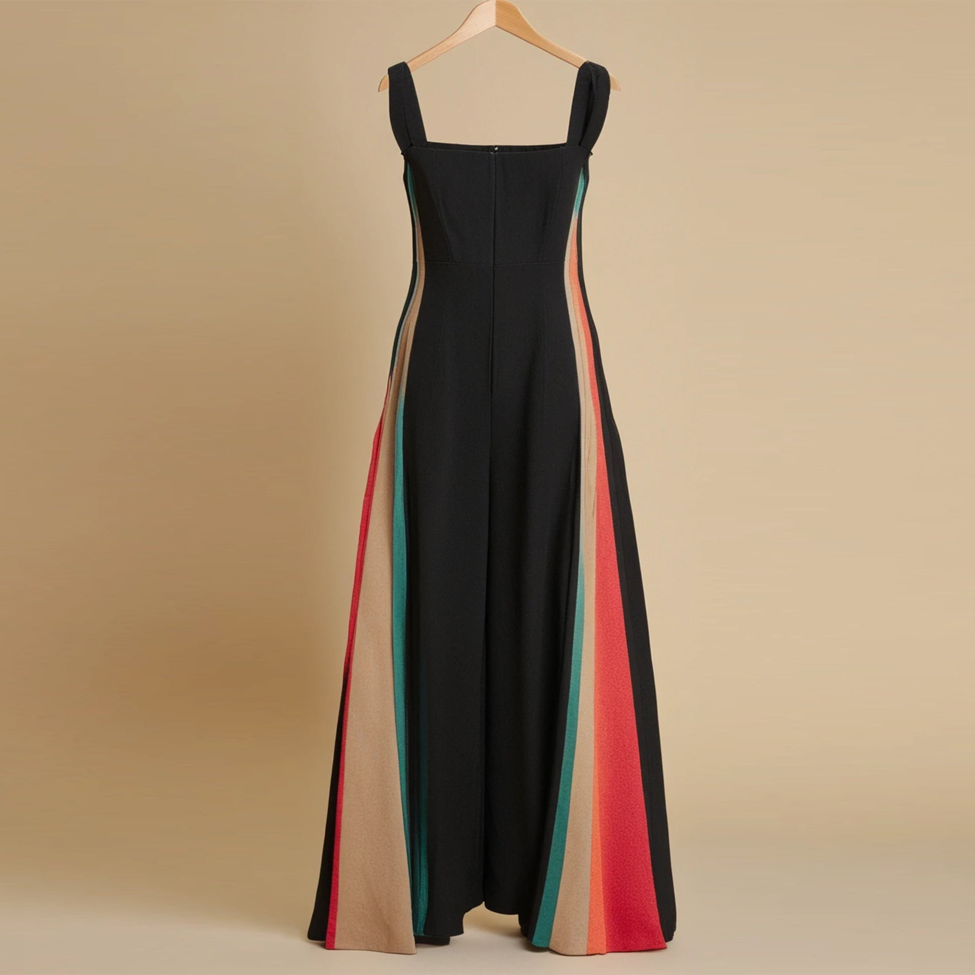Introducing our stunning Women's Strappy Jumpsuit Sewing Pattern! This elegant design boasts a single, captivating solid color center panel flanked by vibrant, eye-catching multicolor side panels, creating a unique and stylish look. The jumpsuit features delicate shoulder straps for comfort and a center-back zipper for easy wear. With its floor-length silhouette, this pattern offers a flattering, fitted look through the hips that gracefully flares towards the bottom. Perfect for special occasions, this sewing pattern allows you to create a chic and distinctive jumpsuit that will turn heads and make you feel confident and fashionable.